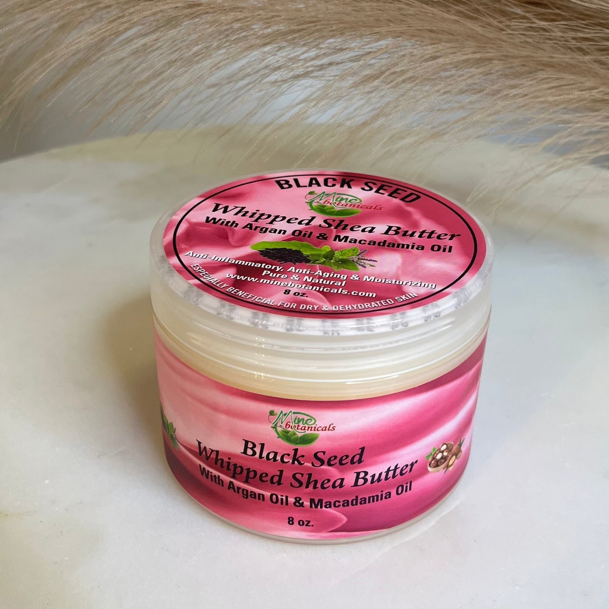 Our black seed body whipped shea butter is made with black seed oil, argan oil, and macadamia oil. Its blend helps naturally fight acne and blemishes, which also work to reduce clogged pores and control oil, as well as tame redness, and soothe irritation, including eczema.