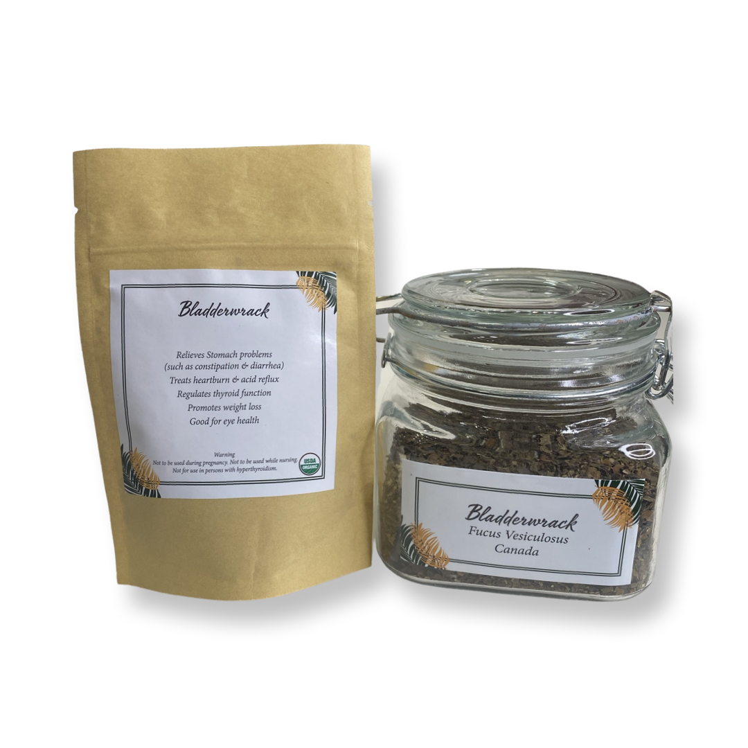 Nutritional Profile: Bladderwrack is rich in vitamins, minerals, and trace elements, including vitamins A, C, E, and B vitamins, as well as calcium, magnesium, potassium, and iron. It provides a range of nutrients that can contribute to overall health and well-being.