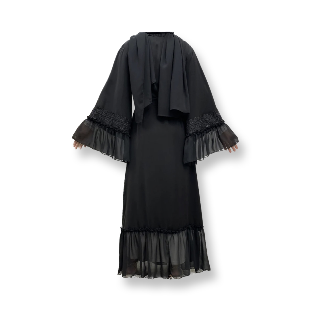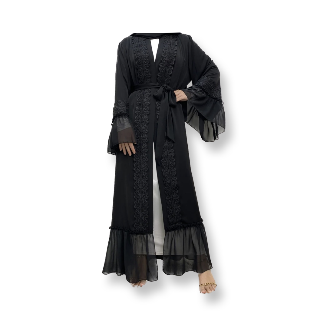 Modest Yet Stylish: Embrace modesty without compromising on style with our Floral Lace Abaya. It strikes the perfect balance between elegance and contemporary fashion.