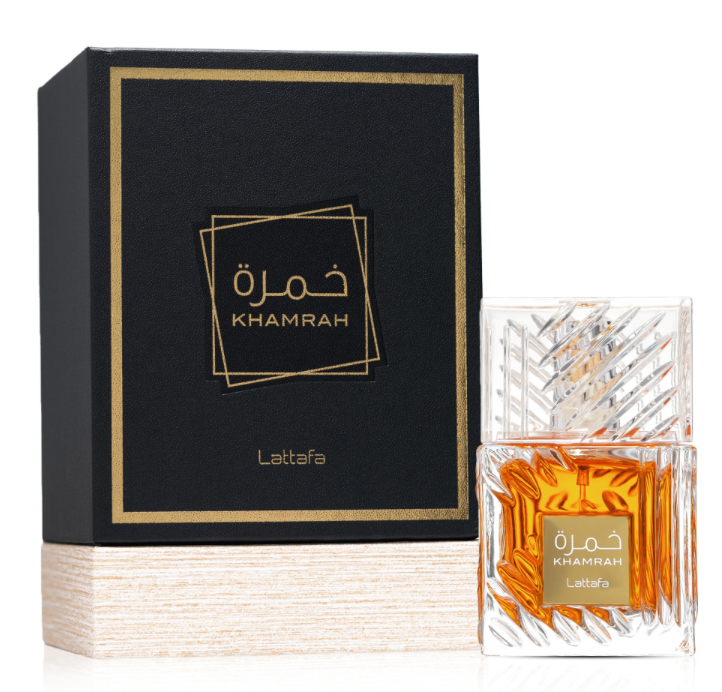 Khamrah by Lattafa Perfumes is an Aromatic Spicy fragrance for women and men. This is a new fragrance. Khamrah was launched in 2022. The top notes are Cinnamon, Nutmeg, and Bergamot; the middle notes are Dates, Praline, Tuberose, and Mahonial; the base notes are Vanilla, Tonka Bean, Amberwood, Myrrh, Benzoin, and Akigalawood.