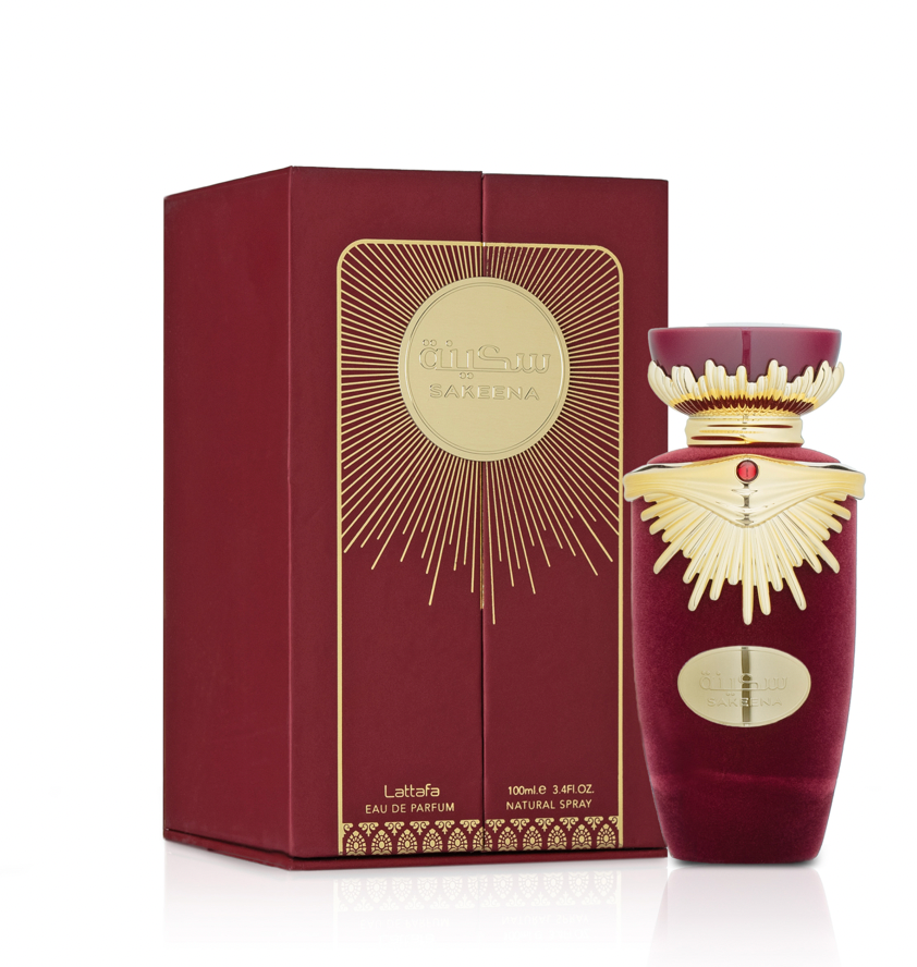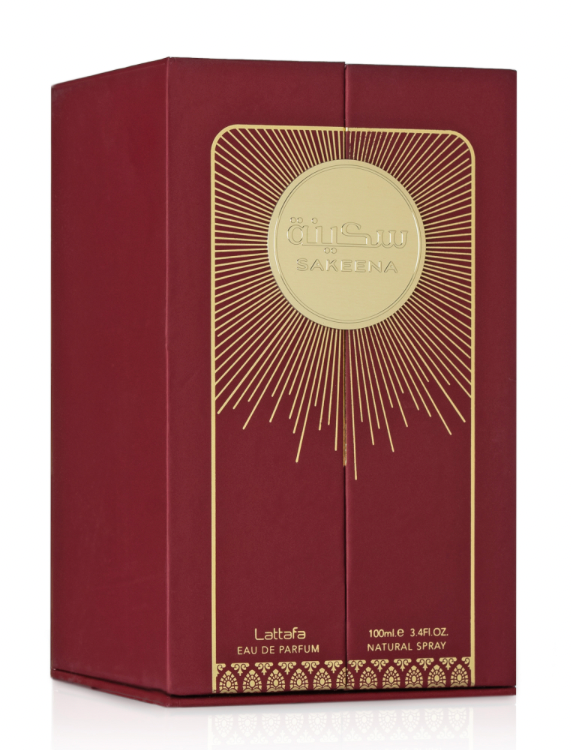 Sakeena by Lattafa Perfumes is a Floral Fruity Gourmand fragrance for women. This is a new fragrance. Sakeena was launched in 2022. Top notes are Passionfruit, Mandarin Orange and Ozonic notes; middle notes are Raspberry, Rose, Orange Blossom and Sea Salt; base notes are Praline, Toffee, Musk and Vanilla.