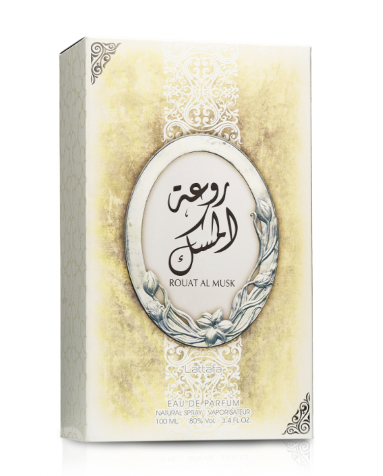 Rouat Al Musk by Lattafa Perfumes is a Amber Floral fragrance for women. Rouat Al Musk was launched in 2019. Top notes are Orange Blossom, Fruits and Mandarin Orange; middle notes are White Flowers, Jasmine and Sandalwood; base notes are Amber and Vanilla.
