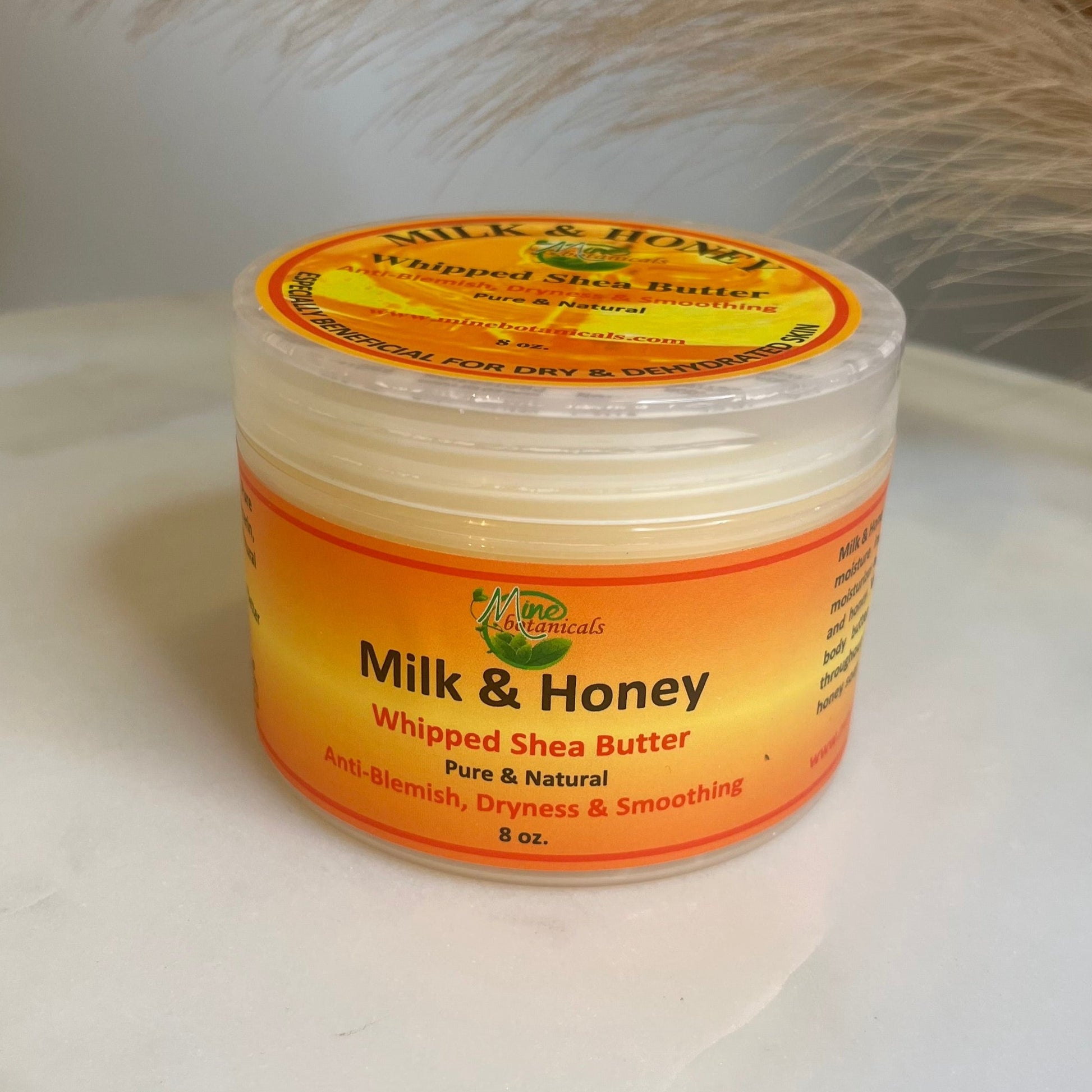 Details:- Milk & Honey Butter Blend has ultra-rich softening benefits to infuse moisture into dry skin. Honey extract, a natural humectant, moisturizes and adds vital nutrients, with a soothing scent of milk and honey. With 24-hour time released emollients, this creamy body butter penetrates the skin's dermis for slow hydration throughout the day. Great to use after exfoliating with the milk and honey soap or body wash.
