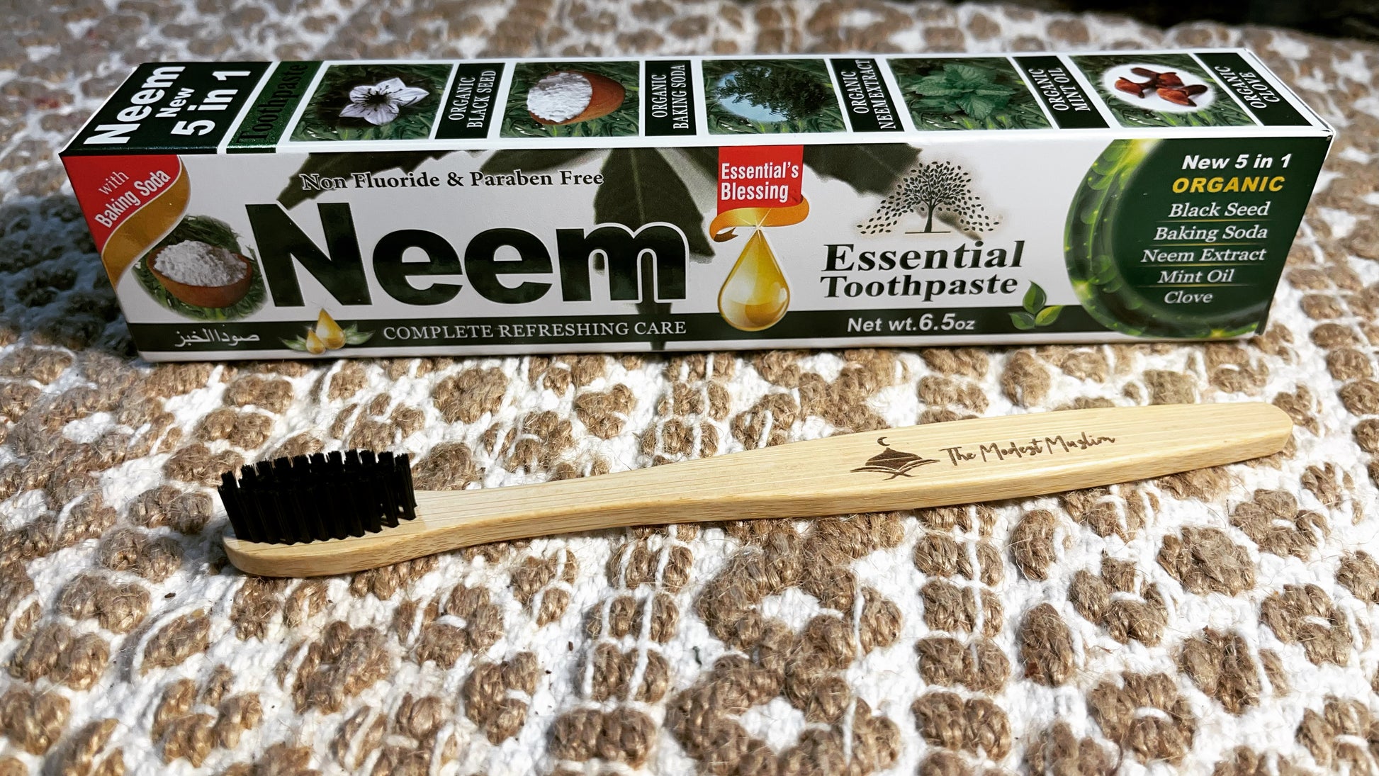INGREDIENTS: Neem, Black seed, clove, Baking Soda and mint in a toothpaste base. Preservative Sodium Benzoate