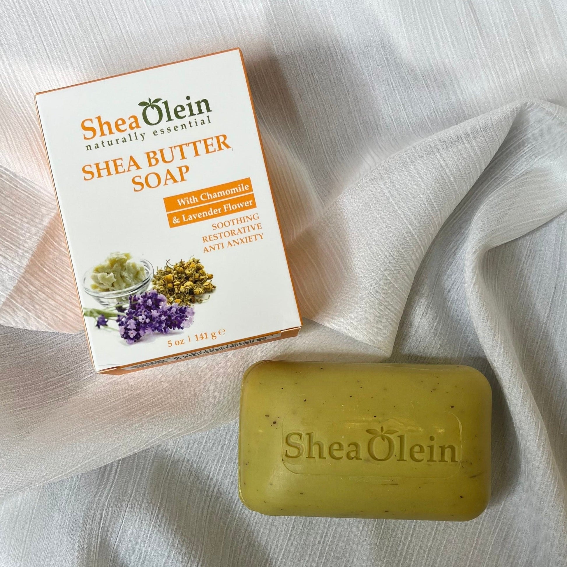 Shea Olein’s certified organic Shea Butter Soap is made with 100% natural Chamomile Extract and Lavender Butter. The high concentration of healthy fatty acids and vitamins in Shea butter along with the anti-inflammatory, antibacterial, and antiseptic properties of Chamomile promotes healing, which makes it an ideal ingredient to soften, soothe, and restore skin. The final addition of Lavender, to reduce stress, anxiety, and tension make Shea Butter Soap an ultra-relaxing bathing experience.