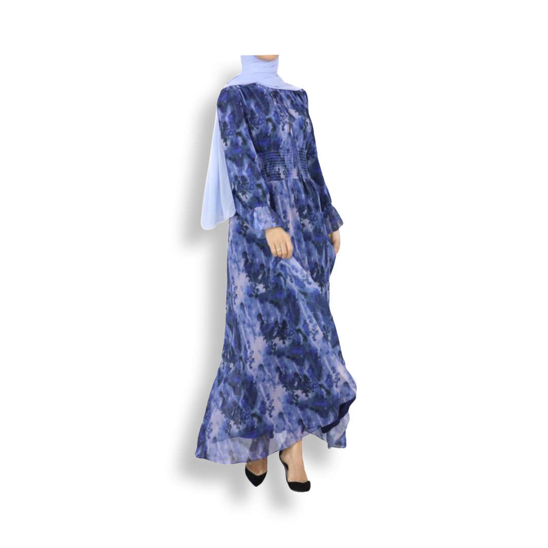 Elegant and Unique: The Watercolor Abaya is a sophisticated garment with a stylish design.
